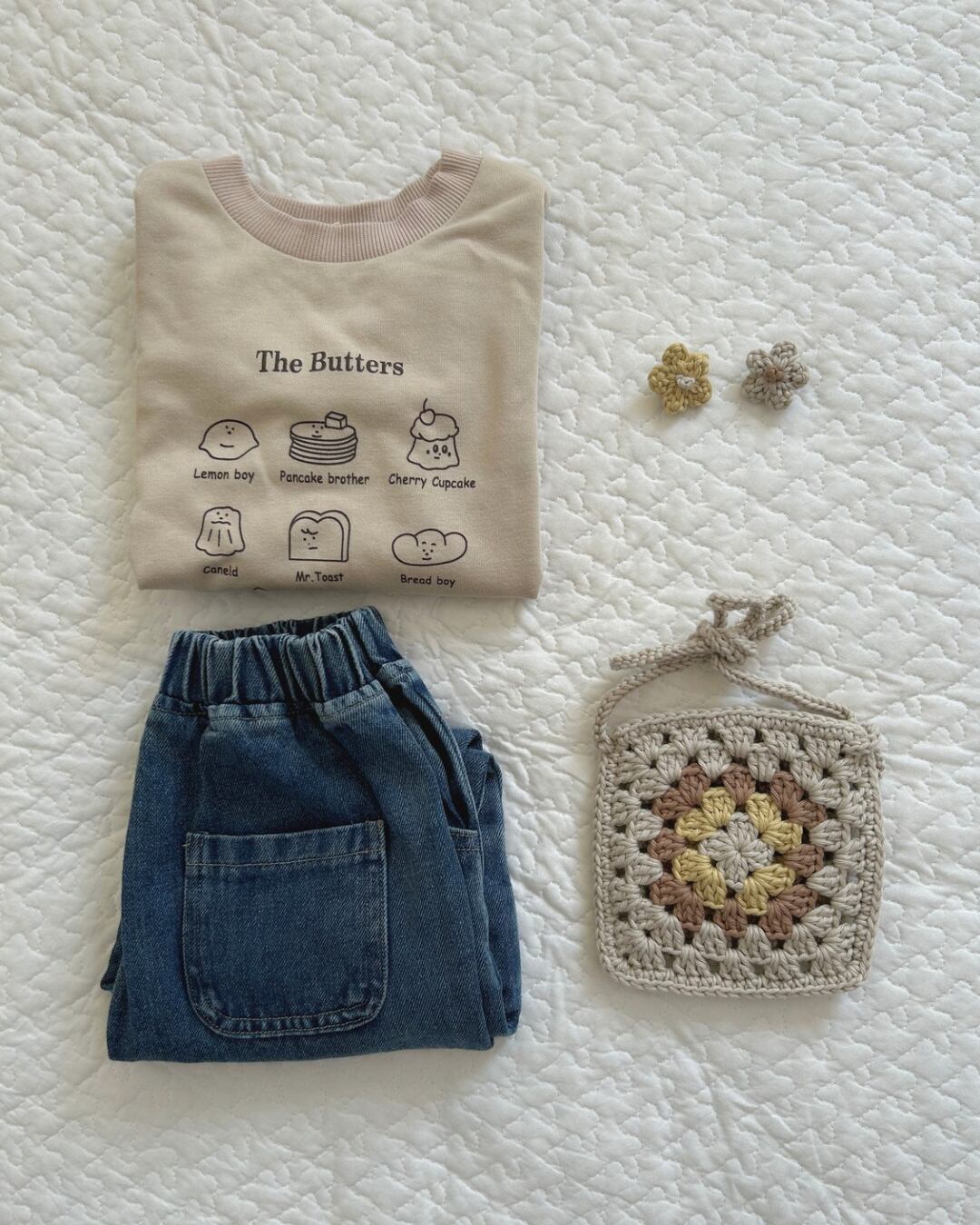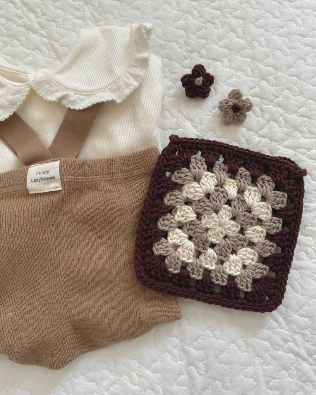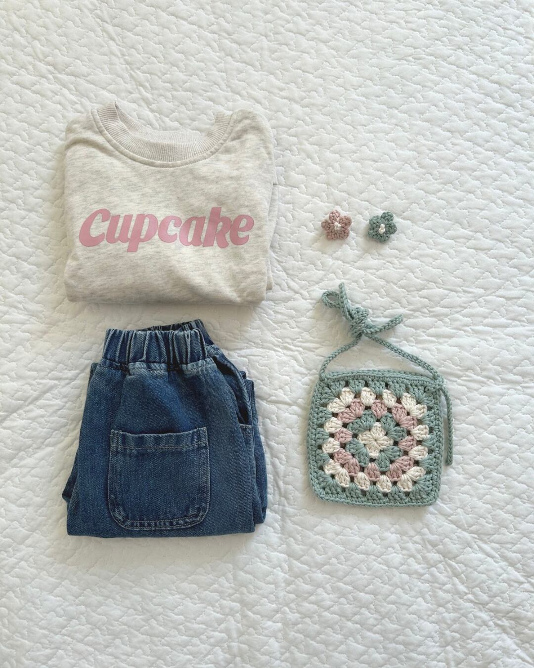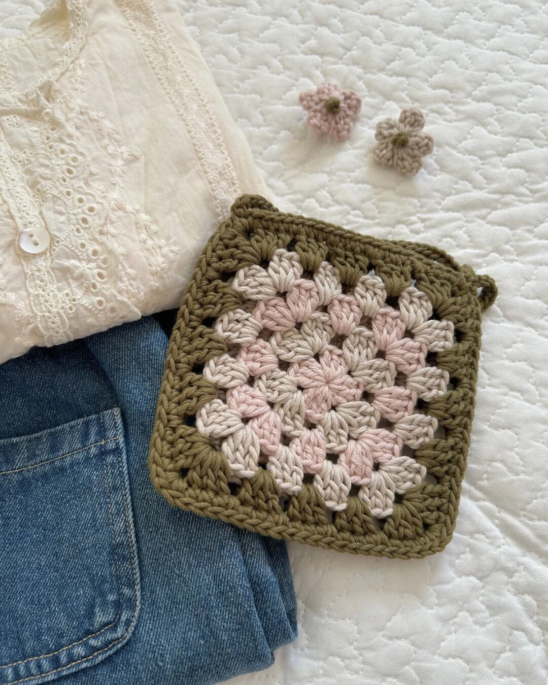 tsumugi pochette(つむぎポシェット)と同じ糸で編んだ、ちいさなお花のヘアピン。