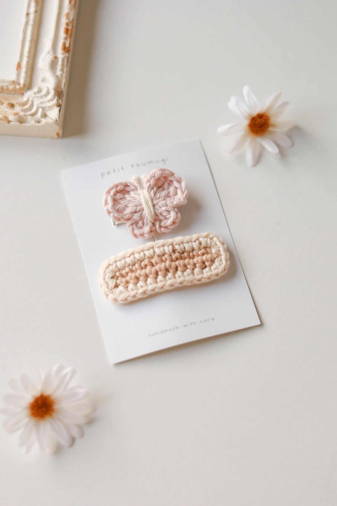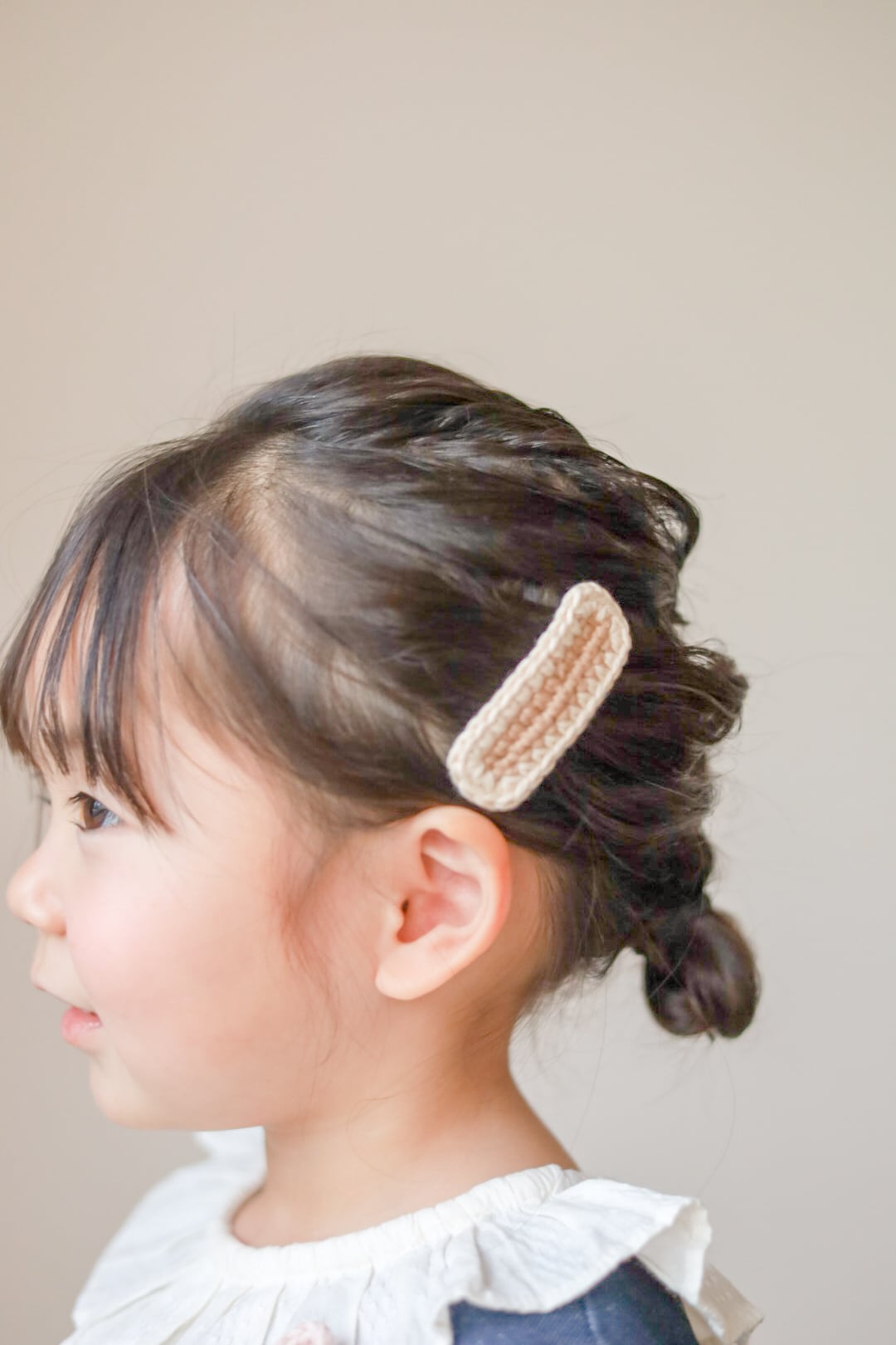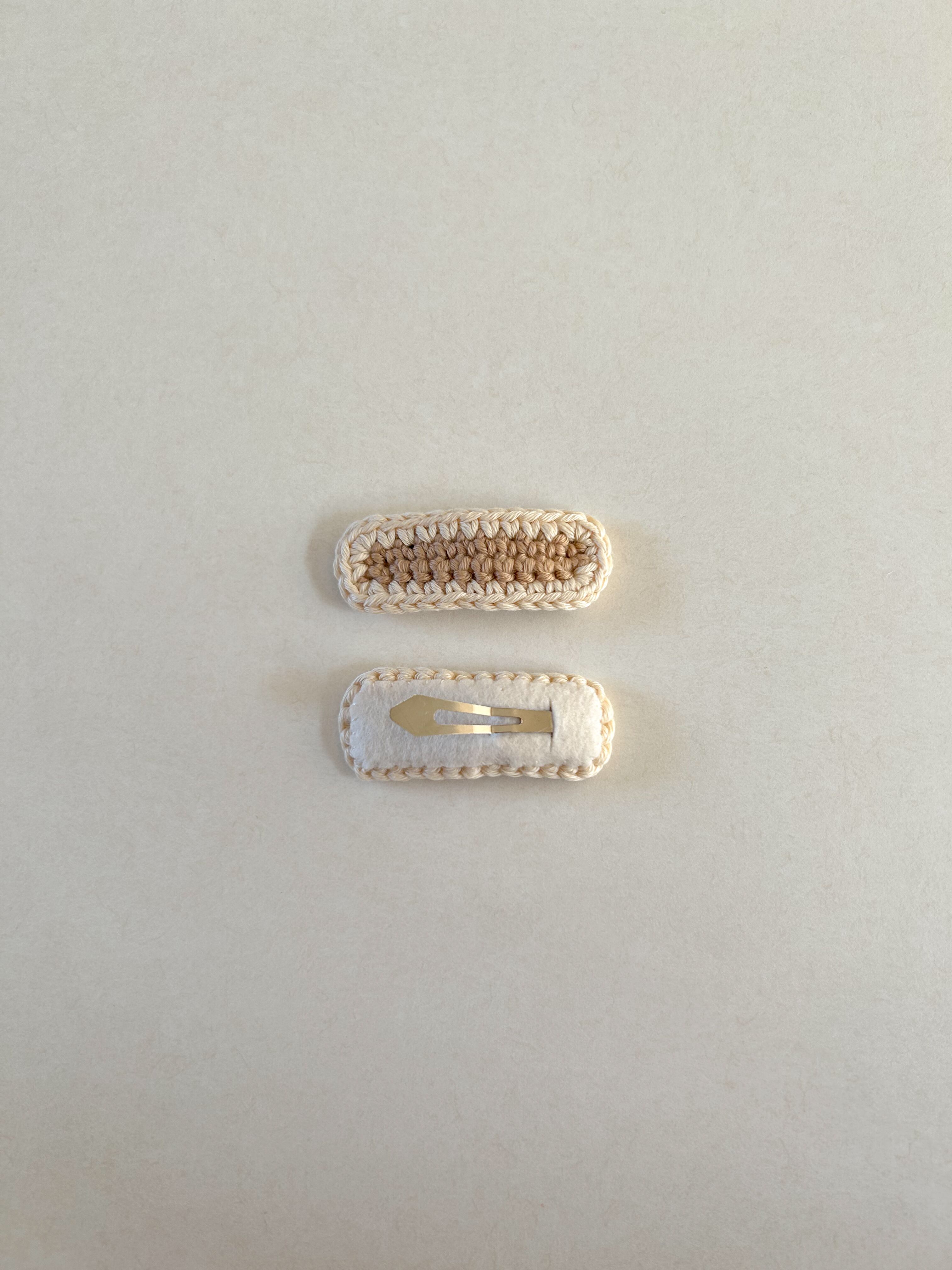 かぎ針編みのぱっちんヘアクリップです。